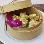 Gestoomde deegpakje gevuld met een mengsel van scampi/varkensvlees
