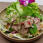 Poh pear phak, kha nom jeeb, kai satay, pla muek peang tod en tempura